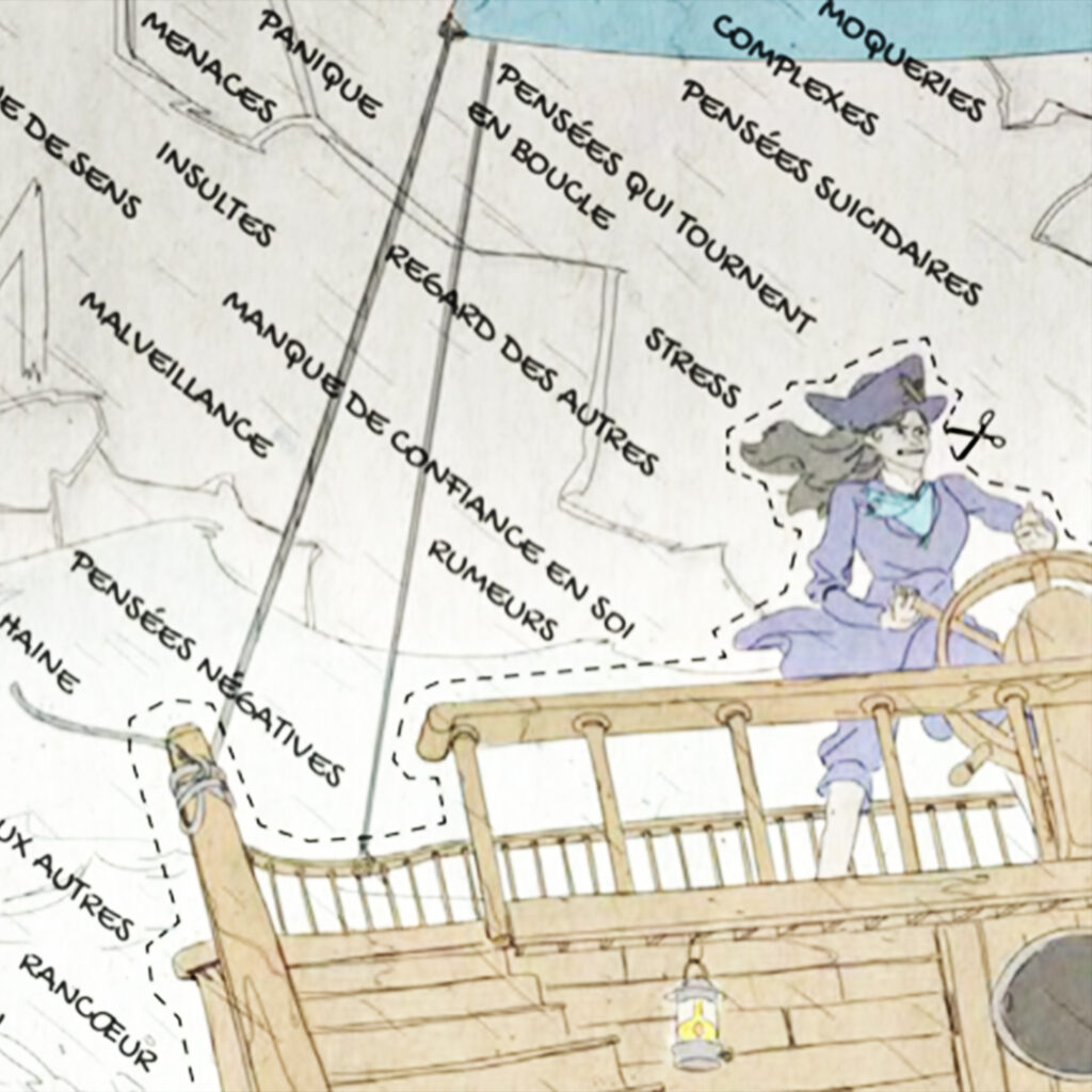 Tu ne peux pas toujours décider de ce qui arrive autour de toi. Tu ne peux pas non plus contrôler les autres. Même tes pensées peuvent parfois s’agiter sans que tu le veuilles. C’est un peu comme si tu étais en pleine mer, au milieu d’une grosse tempête : tu ne
